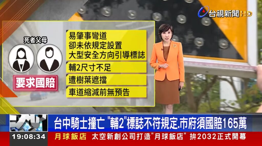 台中騎士撞亡 「輔2」標誌不符規定、市府須國賠165萬